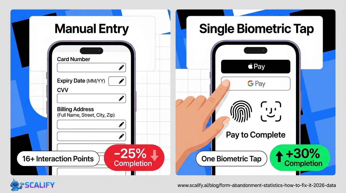 The businesses that have most successfully closed the mobile conversion gap — reducing the difference to 15–20% rather than 47% — have done so primarily through three interventions: streamlining checkout forms to 3–4 fields maximum (vs industry average of 14.88), implementing Apple Pay / Google Pay to eliminate card entry entirely, and ensuring all CTAs meet the recommended 44px minimum tap target size. These are engineering and UX decisions, not marketing decisions — they're the province of the website builder, not the ad buyer.