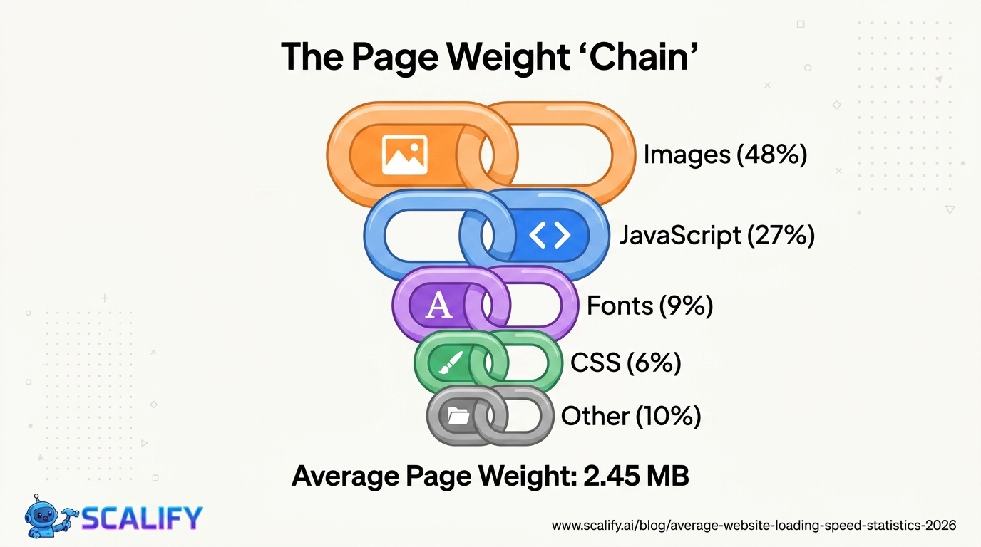 The average mobile page load time of 8.6 seconds places it squarely in the "severe conversion loss" category according to this data. This average is pulled up significantly by the long tail of poorly-optimized small business websites, e-commerce stores with unoptimized images, and older websites running on shared hosting without performance optimization.