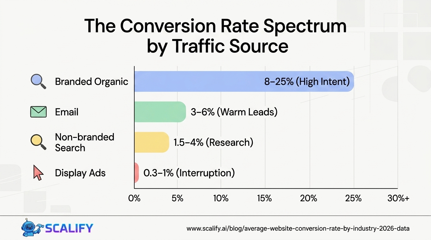 B2B / Professional services: Your mobile traffic share is lower (42–54%), but that doesn't mean mobile is unimportant — it means that a meaningful portion of your audience is still on mobile and that first impressions on mobile matter for credibility even if conversion happens on desktop. Mobile optimization is still required; the urgency level is somewhat lower than consumer-facing businesses.